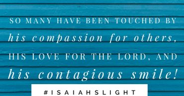 As Isaiah got older we found that he had a different kind of heart. He had different desires than kids his age, even different than most adults. We would pray every morning that we would BE A LIGHT in this dark world, and he was just that!
